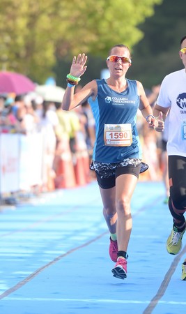京奧鐵人三項金牌斯諾席爾(Emma Snowsill)將寶島初鐵獻給「初鐵聖地」宜蘭梅花湖,今日他和台灣朋友組隊參加全程接力賽事,負責最後一棒10公里路跑項目,這次參賽不以競技為目的,而是來享受台灣初鐵聖地的美。